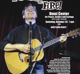 The Faucet’s On Fire! Saturday Oct 24, 7:00 pm at OMNI Center $15 — appearing with Emily Kaitz! Roy Zimmerman brings the sting of satire to the struggle for Peace and Social Justice. His funny songs about fracking, torture, creationism, same-sex marriage, guns, marijuana, abstinence, ignorance, war and greed have been heard on Showtime, HBO, and NPR, and he’s shared stages with Bill Maher, Robin Williams, Ellen Degeneres, John Oliver, Kate Clinton, and George Carlin. “… a latter-day Tom Lehrer.” (LA Times) OMNI Center at 3274 No Lee Ave, Fayetteville.  935-4422 for more info