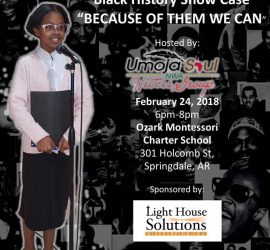 Black History Month! Full schedule of activities February 17 from 9 a.m. to 1 p.m. Peterson Auditorium, Shewmaker Center, NWACC Campus “Race in Arkansas – 2018 Benton County Black History Month Event” Updates at this link: https://www.joncomstock.com/nw-arkansas-public-discussion Jon Comstock jon@joncomstock.com