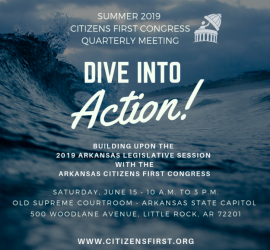 Saturday June 15th from 10:00 am – 3:00 pm at the Arkansas State Capitol We will “Dive Into Action” with an exciting day planned for our members and member groups! We are still finalizing the agenda but I can tell you that it’s one you and your members won’t want to miss because it will set the pace for our work going into the rest of 2019 and 2020. On June 15th, we will hear from a panel of state legislators recapping the good and the bad of the 92nd General Assembly and some things to look out for moving […]