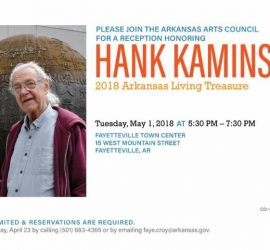 Recognition for Hank Kaminsky, long-time Fayetteville Peace Artist and OMNI member, is well-deserved. The free, public reception to honor Fayetteville sculptor Hank Kaminsky, the 2018 Arkansas Living Treasure. Seats are limited; reservations are required. Please RSVP by April 23 to Faye Croy at faye.croy@arkansas.gov or (501) 683-4365. The reception is co-sponsored by Experience Fayetteville