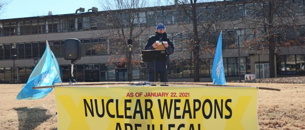 Dear Friends, Our Nuclear Bomb Ban Celebration & Protest of U of A Participation in Building Nuclear Weapons event went great! A huge Thank You goes out to everyone that showed up in the cold weather! And we were not alone, as at least 158 other groups all over the world, on every continent, rose up to celebrate this historic milestone! Nuclear weapons are now officially illegal under international law!