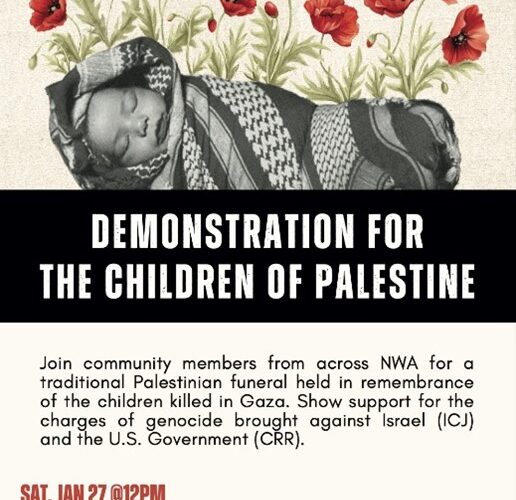 Join Omni folks at Friends of Palestine NWA’s demonstration Saturday Jan 27 at noon, at the Washington County Courthouse.