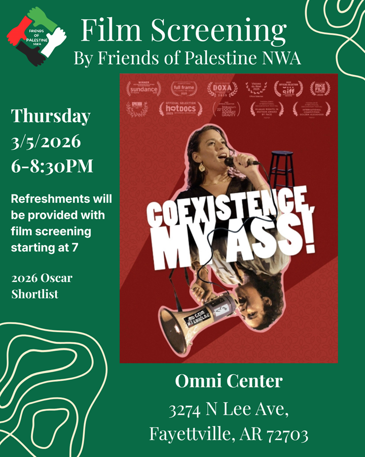 📍 Location: Omni Center for Peace, Justice & Ecology, 3274 N Lee Ave, Fayetteville, AR 72703